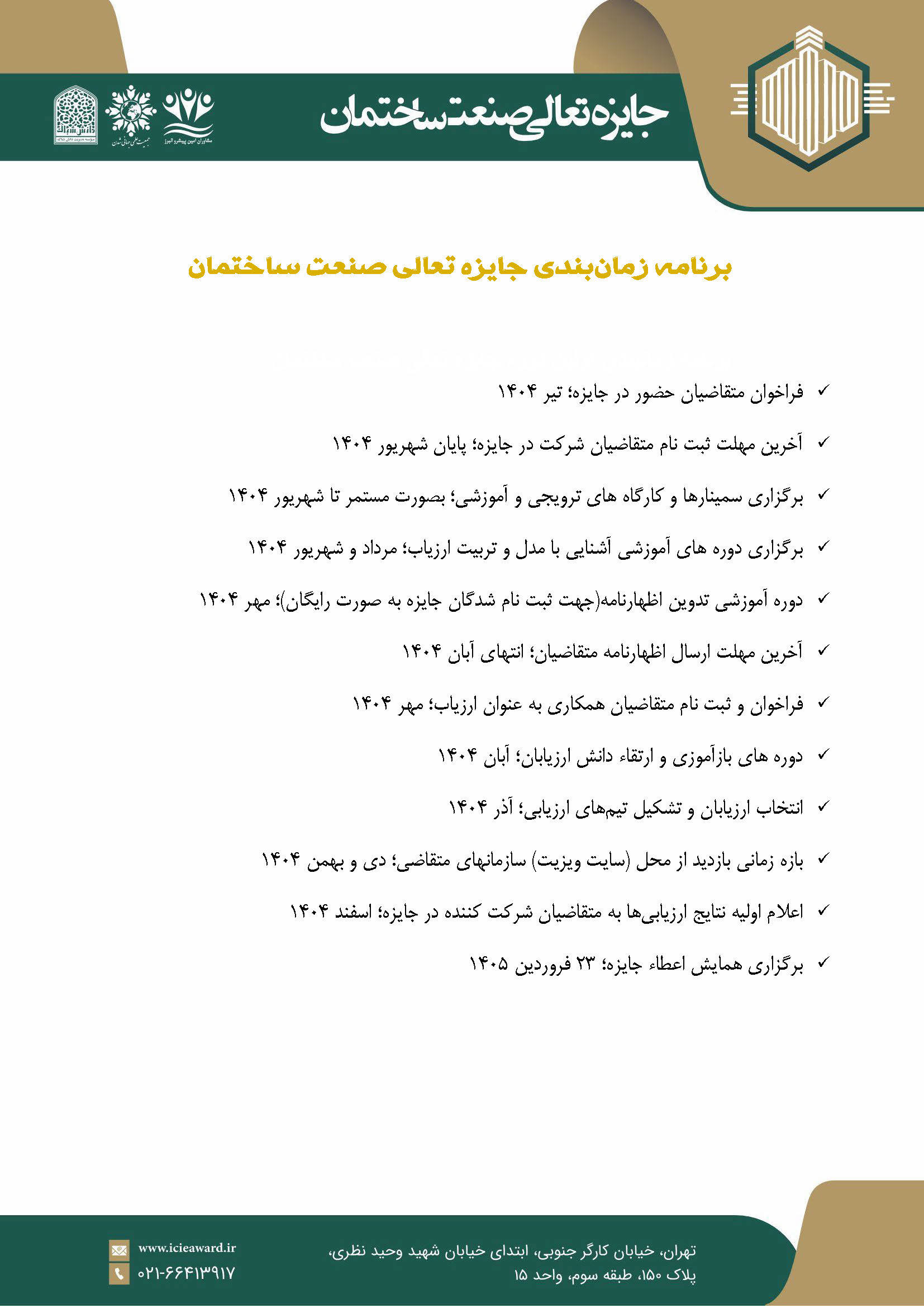 برنامه زمانبندی جایزه تعالی صنعت ساختمان